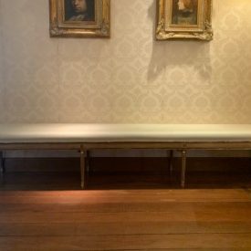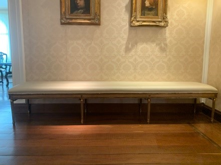 0109 Voltar 13 de agosto de 2021 por   Documento 1093 Baixar Anexos 1093 Metadados Miniatura Compartilhar Número de ficha0109ObjetoBanco DouradoConjuntoConjunto de BancosNúmero de Item3DescriçãoBanco com assento retangular. Estrutura da peça em madeira com douramento; oito pernas em caneluras. Cinta lisa ornada com rosáceas, pés em carrapeta.DataSéculo XXMaterialMadeira | Tecido | Folha de Ouro | EspumaProcedênciaIgnoradaModo de aquisiçãoIgnoradoOrgãoSecretaria de Estado de Governo do Maranhão - SEGOVResponsabilidade imediataCuradoria dos Bens Culturais do Palácio dos LeõesAssinaturaNão possuiMarcas / Inscrições / LegendasNão possuiAltura51 cmLargura272.5 cmProfundidade50 cmProteção legalGoverno do Estado do MaranhãoCondição de SegurançaBomEstado de ConservaçãoBomObjeto Restaurado?Não Continue navegando 0109 0109 Voltar para a página de itens