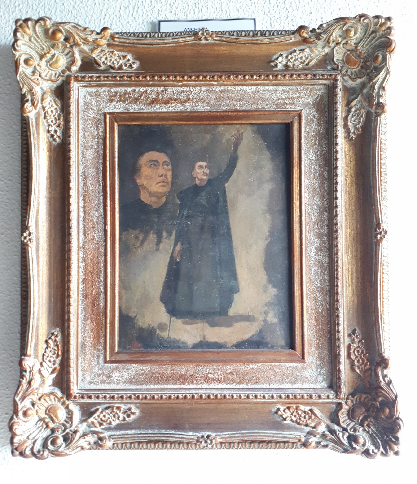 0037 Voltar 22 de julho de 2021 por   Documento 37 Baixar Metadados Miniatura Compartilhar Número de ficha0037SérieColeção Arthur AzevedoTítuloAnchietaAutorF. MonteiroDescrição da ObraComposição retratando, em primeiro plano, o Padre Anchieta , trajando hábito preto; olhar voltado para cima; braço esquerdo levantado; na mão direita cajado. Em segundo plano, reserva com a efígie do sacerdote.TécnicaÓleo sobre telaDataDesconhecidaMarcas/ Inscrições / LegendasNão possuiAltura64 cmLargura56,8 cmAssinaturaSem assinaturaProcedênciaColeção Arthur AzevedoModo de AquisiçãoCompra - 1910Responsabilidade ImediataCuradoria de Bens Culturais do Palácio dos LeõesProteção legalGoverno do Estado do MaranhãoCondições de SegurançaBomObjeto Restaurado?Não Continue navegando 0036 0038 Voltar para a página de itens