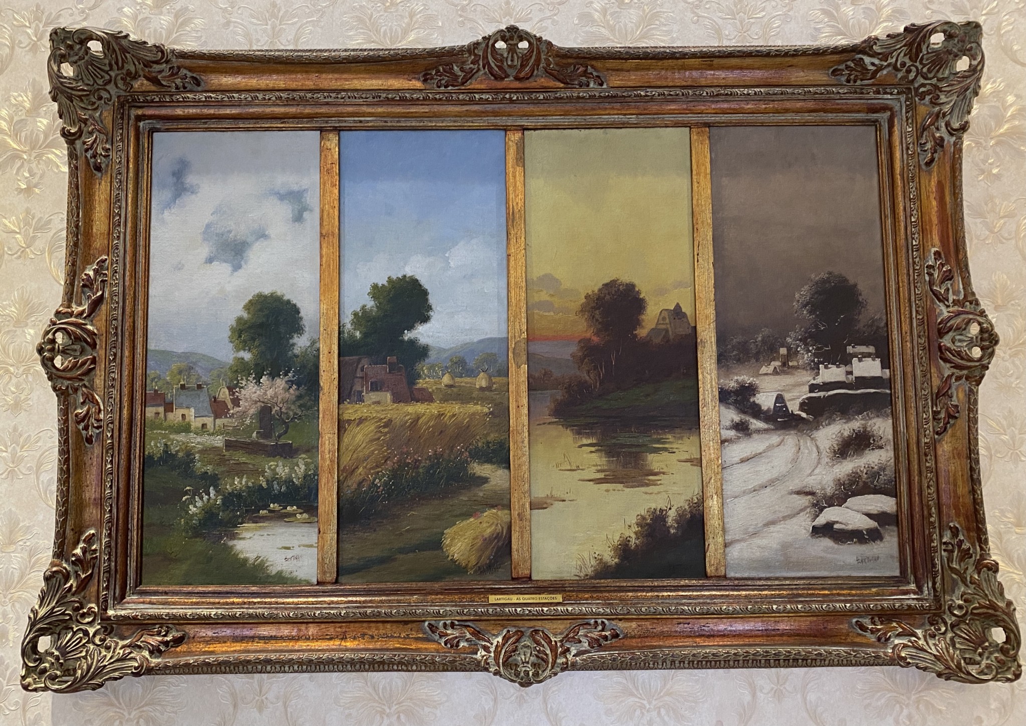0054 Voltar 27 de julho de 2021 por   Documento 54 Baixar Anexos ok54 Metadados Miniatura Compartilhar Número de ficha0054SérieColeção Arthur AzevedoTítuloAs Quatro EstaçõesAutorL. LartigauDescrição da ObraTela dividida em quatro partes retratando as estações do ano. Inverno onde as plantas estão ociosas; outono com as árvores amareladas e liberam suas folhas; primavera e verão.TécnicaÓleo sobre telaDataDesconhecidaMarcas/ Inscrições / LegendasNão possuiAltura64 cmLargura24,3 cmAssinaturaL. LartigauProcedênciaColeção Arthur AzevedoModo de AquisiçãoCompra - 1910Responsabilidade ImediataCuradoria de Bens Culturais do Palácio dos LeõesProteção legalGoverno do Estado do MaranhãoCondições de SegurançaBomObjeto Restaurado?Não Continue navegando 0053 0055 Voltar para a página de itens