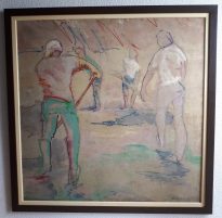 0072 Voltar 28 de julho de 2021 por   Documento 72 Baixar Metadados Miniatura Compartilhar Número de ficha0072TítuloOperáriosAutorMarçal AthaydeDescrição da ObraTela retratando quatro (04) homens trabalhando. Dois trabalhadores estão de costas, um deles está de chapéu e segurando a enxada. Dois outros estão de frente, e um deles também segura uma enxada.TécnicaÓleo sobre telaDataSéc. XX - 1984Marcas/ Inscrições / LegendasNão possuiAltura1.089 mLargura1.089mAssinaturaM ATHAIDEProcedênciaDesconhecidaModo de AquisiçãoIgnoradoResponsabilidade ImediataCuradoria de Bens Culturais do Palácio dos LeõesProteção legalGoverno do Estado do MaranhãoCondições de SegurançaBomObjeto Restaurado?Não Continue navegando 0071 0073 Voltar para a página de itens