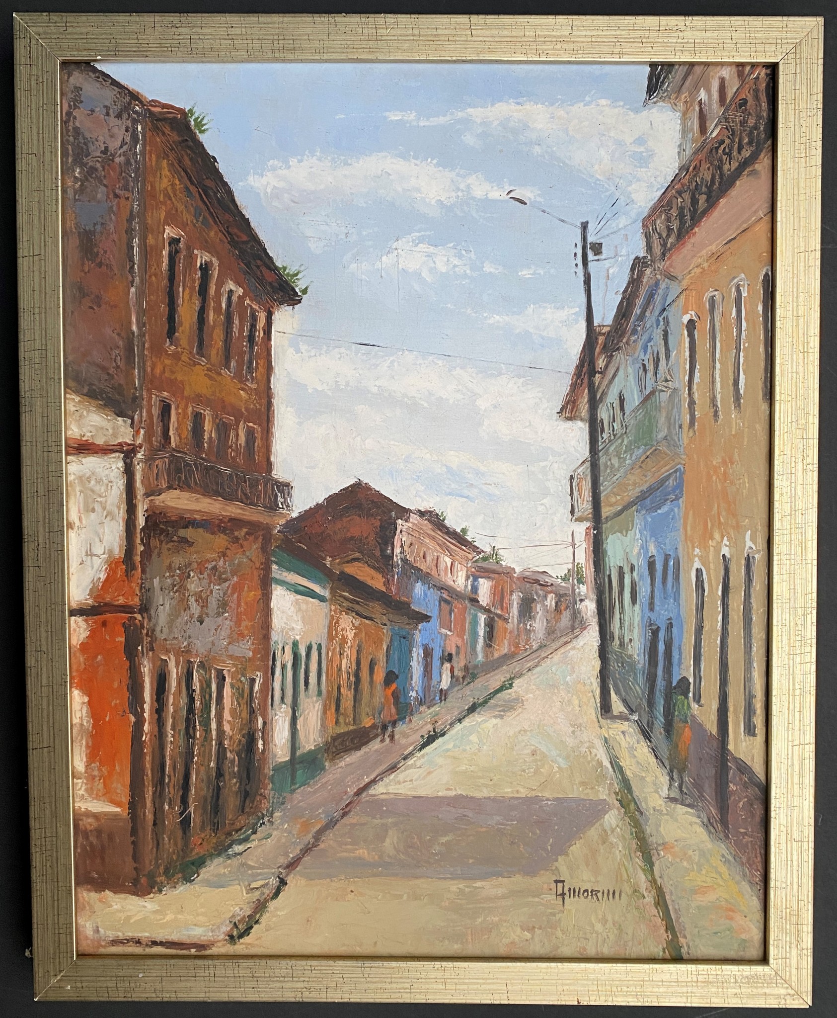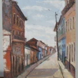 0085 Voltar 29 de julho de 2021 por   Documento 85 Baixar Anexos 85 Metadados Miniatura Compartilhar Número de ficha0085TítuloCasariosAutorAmbrósio AmorimDescrição da ObraTela retratando rua com casario dos dois lados. Do lado direito da tela, sobrados e, na rua poste de eletricidade. Do lado esquerdo, sobrado, morada inteira, e outras edificações.TécnicaÓleo sobre madeiraDataDesconhecidaMarcas/ Inscrições / LegendasNão possuiAltura48,8 cmLargura38,1cmAssinaturaAmorimProcedênciaDesconhecidaModo de AquisiçãoIgnoradoResponsabilidade ImediataCuradoria de Bens Culturais do Palácio dos LeõesProteção legalGoverno do Estado do MaranhãoCondições de SegurançaBomObjeto Restaurado?Não Continue navegando 0084 0086 Voltar para a página de itens