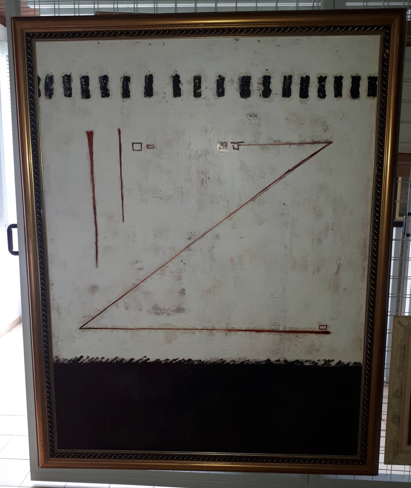 0126 Voltar 3 de agosto de 2021 por   Documento 126 Baixar Metadados Miniatura Compartilhar Número de ficha0126TítuloSem TítuloAutorGeraldo ReisDescrição da ObraPintura abstrata. Textura em alto relevo. Detalhes aplicados em forma geométricas aplicados nas extremidades da tela. Linha perpendicular passa pelo centro da tela. Predominância da cor branca.TécnicaAcrílico sobre telaDataSéc. XX - 1992Marcas/ Inscrições / LegendasNão possuiAltura1,70 mLargura1,30 mAssinaturaGeraldo Reis, 92ProcedênciaBanco do Estado do Maranhão - BEMModo de AquisiçãoTransferência - 13/04/2004Responsabilidade ImediataCuradoria de Bens Culturais do Palácio dos LeõesProteção legalGoverno do Estado do MaranhãoCondições de SegurançaBomObjeto Restaurado?Não Continue navegando 0125 0127 Voltar para a página de itens