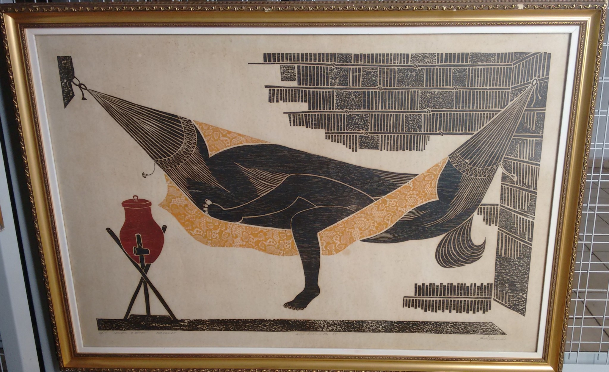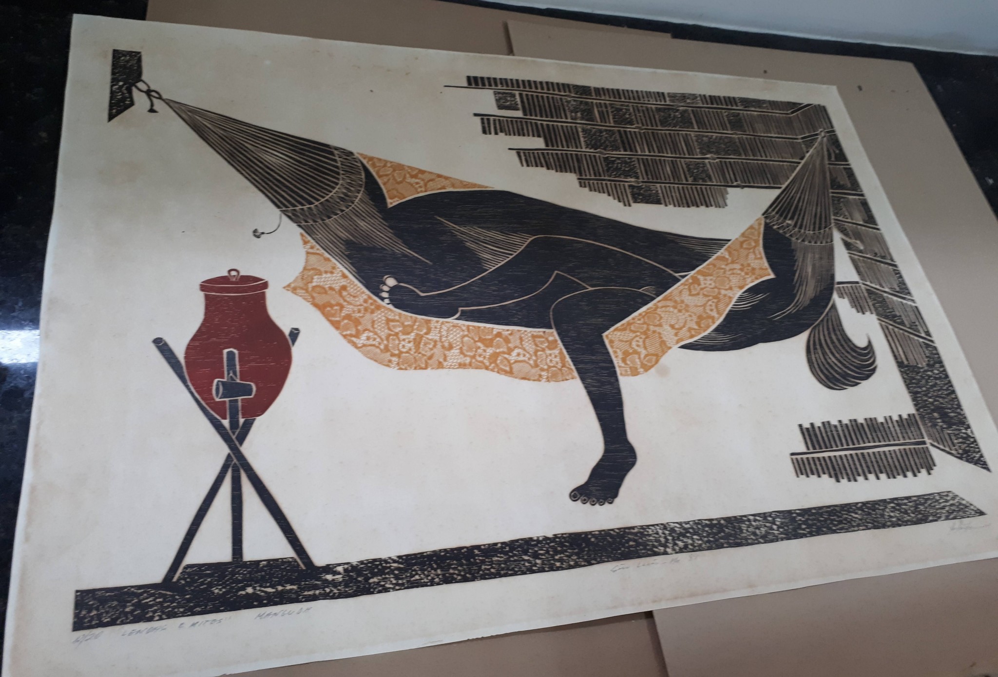 0171 Voltar 11 de agosto de 2021 por   Documento 171 Baixar Anexos 171 Metadados Miniatura Compartilhar Número de ficha0171TítuloLendas e mitos -MangudaAutorAírton MarinhoDescrição da ObraFigura central da composição está deitada numa rede representando a figura lendária “Manguda”.TécnicaXilogravuraDataSéc. XX - 1989Marcas/ Inscrições / LegendasNão possuiAltura0,777 mLargura1,165 mAssinaturaAirton MarinhoProcedênciaBanco do Estado do Maranhão - BEMModo de AquisiçãoTransferência - 13/04/2004Responsabilidade ImediataCuradoria de Bens Culturais do Palácio dos LeõesProteção legalGoverno do Estado do MaranhãoCondições de SegurançaBomObjeto Restaurado?Não Continue navegando 0170 0172 Voltar para a página de itens