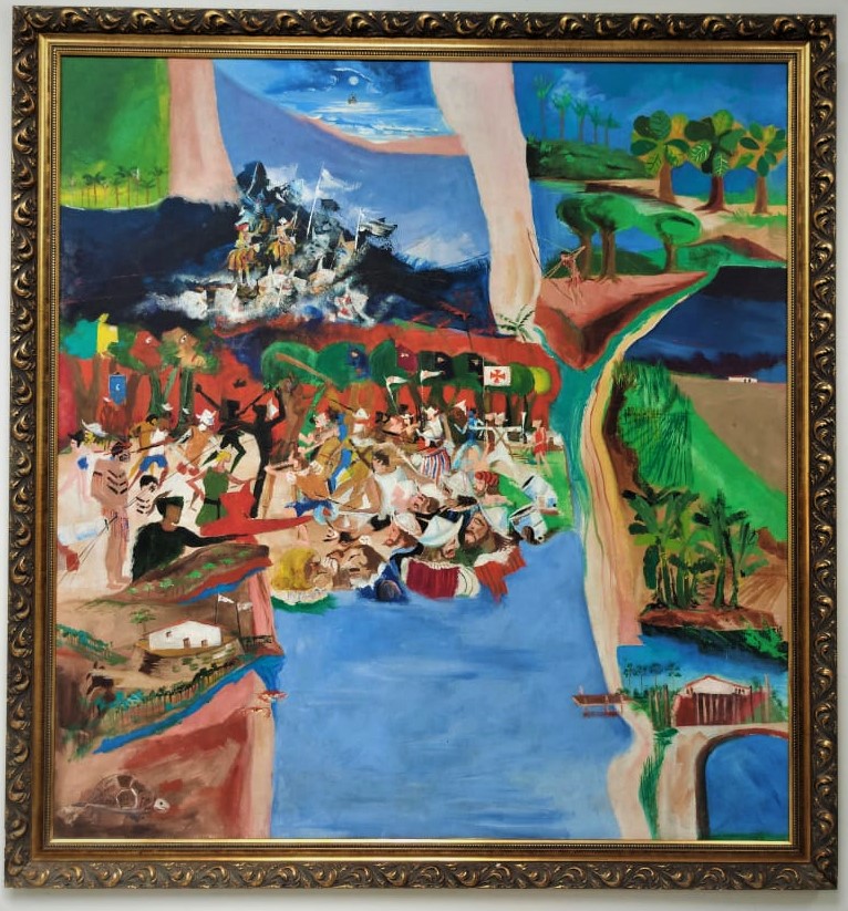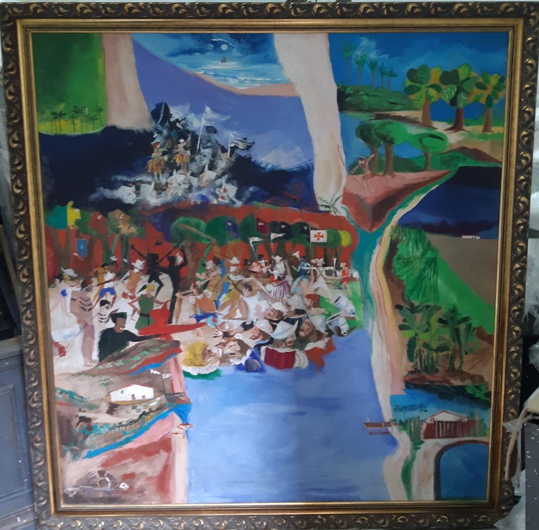 0192 Voltar 12 de agosto de 2021 por   Documento 192 Baixar Anexos 192 Metadados Miniatura Compartilhar Número de ficha0192TítuloSem TítuloAutorJesus SantosDescrição da ObraComposição retratando uma batalha entre franceses e portugueses. Estes carregando flâmulas e bandeiras contendo a cruz de malta; os franceses com estandartes com flor de liz.TécnicaÓleo sobre telaDataDesconhecidaMarcas/ Inscrições / LegendasNão possuiAltura1,60 mLargura1,57 mAssinaturaAssinado na terceira tela que compõe o tríptico.ProcedênciaBanco do Estado do Maranhão - BEMModo de AquisiçãoTransferência - 13/04/2004Responsabilidade ImediataCuradoria de Bens Culturais do Palácio dos LeõesProteção legalGoverno do Estado do MaranhãoCondições de SegurançaBomObjeto Restaurado?Não Continue navegando 0010 0212 Voltar para a página de itens