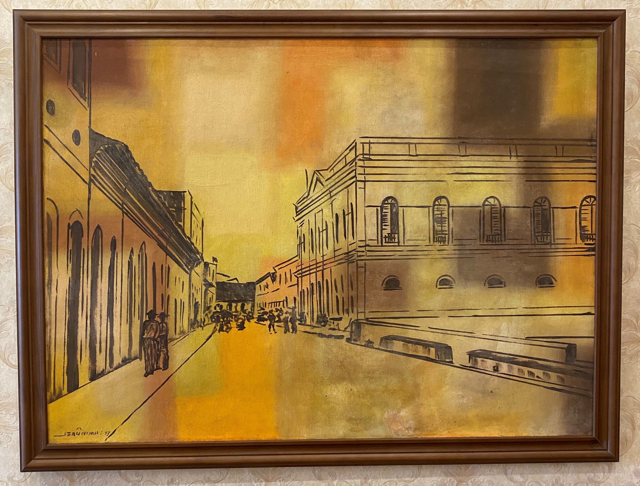 0211 Voltar 29 de julho de 2021 por   Documento 211 Baixar Anexos 089 Metadados Miniatura Compartilhar Número de ficha0211SérieColeção BEMTítuloSem TítuloAutorJerônimoDescrição da ObraPintura retrata rua com casas e prédio. No lado esquerdo, prédio com frontão neoclássico; lateral com janelas. Ao lado do prédio bancos. Na calçada, do lado esquerdo, figura masculina com chapéu.TécnicaÓleo sobre telaDataSéc. XX - 1993Marcas/ Inscrições / LegendasNão possuiAltura0,72 mLargura1,00 mAssinaturaJerônimo, 93ProcedênciaBanco do Estado do MaranhãoModo de AquisiçãoDoação - Banco do Estado do MaranhãoResponsabilidade ImediataCuradoria de Bens Culturais do Palácio dos LeõesProteção legalGoverno do Estado do MaranhãoCondições de SegurançaBomObjeto Restaurado?Não Continue navegando 0213 0210 Voltar para a página de itens