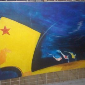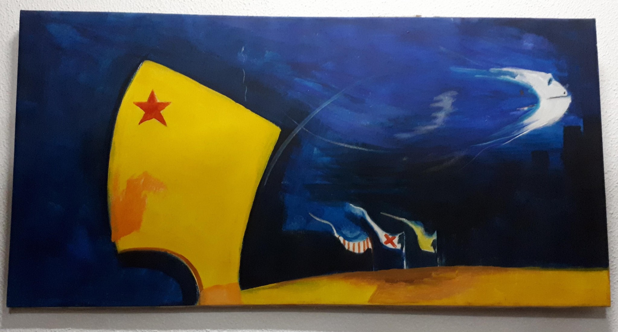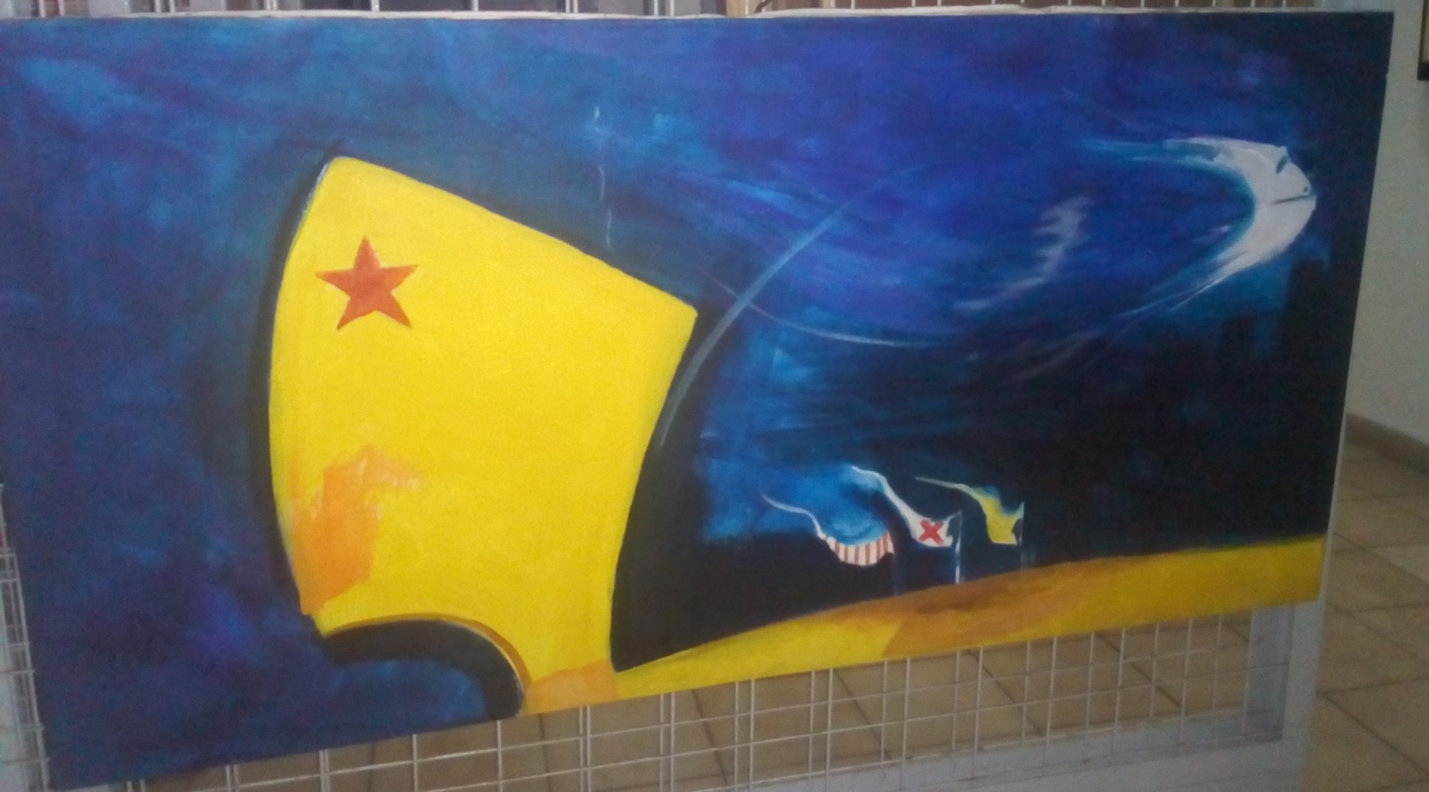 0261 Voltar 5 de julho de 2021 por   Documento 261 Baixar Anexos 143. Metadados Miniatura Compartilhar Número de ficha0261SérieColeção BEMTítuloSem TítuloAutorJesus SantosDescrição da ObraTela com fundo azul. Tomando grande parte da composição, figura amarela, lembrando parte de um avião. com três sensores de vento; no alto linhas se cruzam sugerindo vento.TécnicaÓleo sobre telaDataSéculo XX - 1999Marcas/ Inscrições / LegendasNão possuiAltura0,60mLargura1,255mAssinaturaSem assinaturaProcedênciaBanco do Estado do MaranhãoModo de AquisiçãoDoação - Banco do Estado do MaranhãoResponsabilidade ImediataCuradoria de Bens Culturais do Palácio dos LeõesProteção legalGoverno do Estado do MaranhãoCondições de SegurançaBomObjeto Restaurado?Não Continue navegando 0260 0262 Voltar para a página de itens