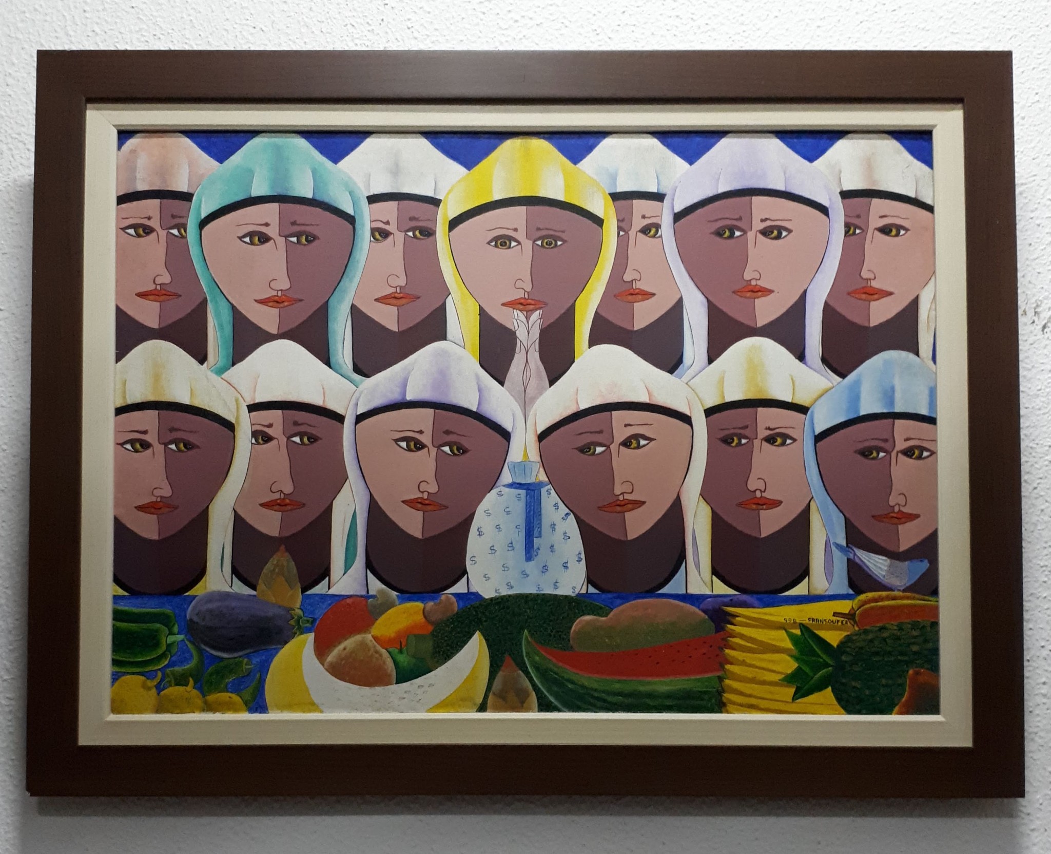 0264 Voltar 13 de agosto de 2021 por   Documento 264 Baixar Metadados Miniatura Compartilhar Número de ficha0264Títulosem títuloAutorFransouferDescrição da ObraComposição lembrando “A última Ceia”: ao centro Jesus Cristo, e apóstolos. Na mesa saco de dinheiro e frutas tropicais, legumes e pássaro.TécnicaAcrílico sobre telaDataSéculo XX - 1999Marcas/ Inscrições / LegendasNão possuiAltura50 cmLargura70 cmAssinaturaFransoufer 98ProcedênciaBanco do Estado do MaranhãoModo de AquisiçãoTransferência - 13/04/2004Responsabilidade ImediataCuradoria de Bens Culturais do Palácio dos LeõesProteção legalGoverno do Estado do MaranhãoCondições de SegurançaBomObjeto Restaurado?Não Continue navegando 0251 0279 Voltar para a página de itens