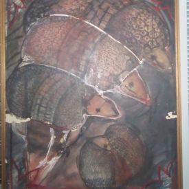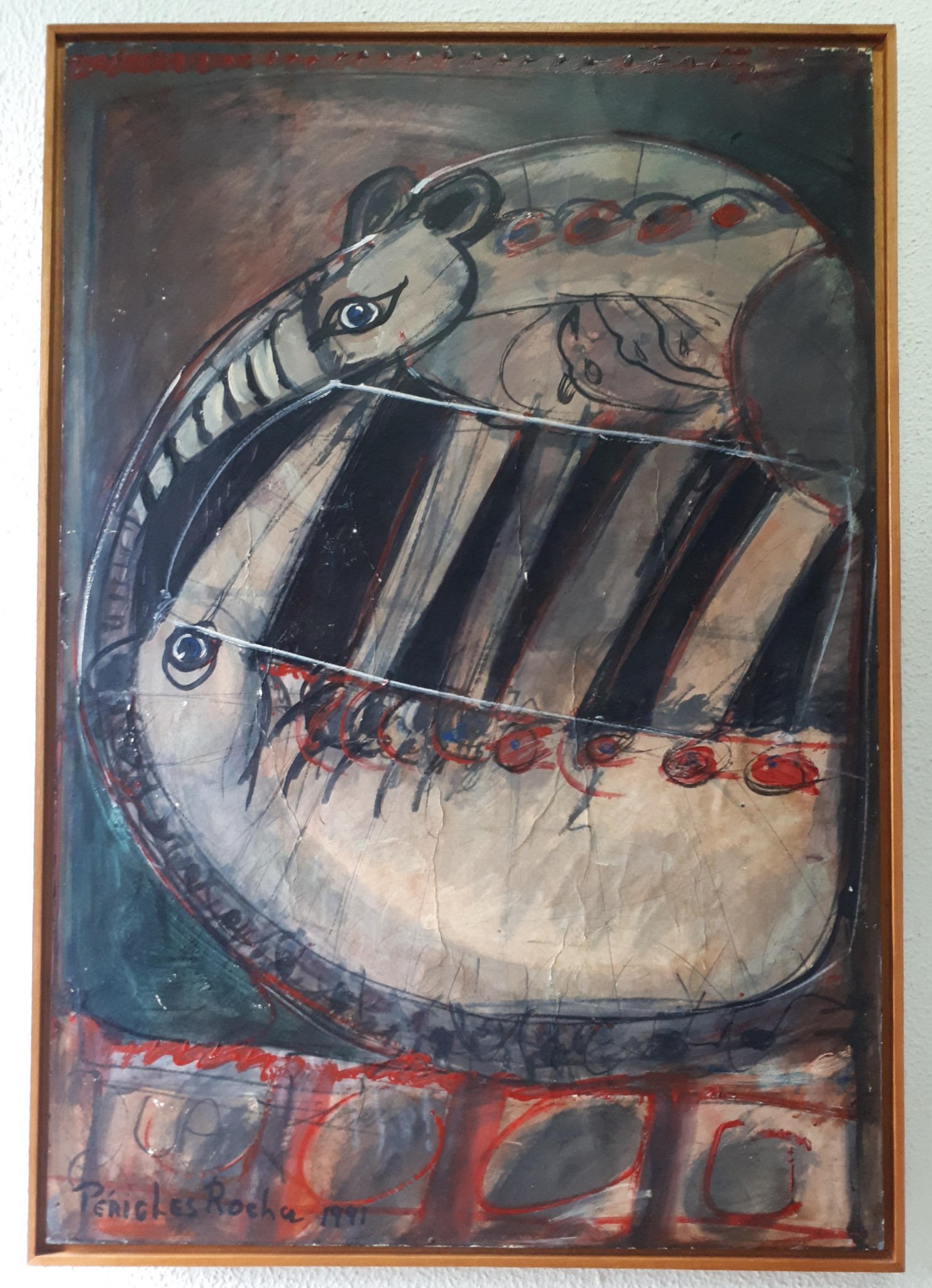 0268 Voltar 6 de julho de 2021 por   Documento 268 Baixar Anexos 151 Metadados Miniatura Compartilhar Número de ficha0268SérieColeção BEMTítuloSem TítuloAutorPéricles RochaDescrição da ObraDois tamanduás entrelaçados (sugerindo um combate entre os dois animais).TécnicaÓleo sobre papelDataSéculo XX - 1994Marcas/ Inscrições / LegendasNão possuiAltura0,93mLargura0,635mAssinaturaPéricles RochaProcedênciaBanco do Estado do MaranhãoModo de AquisiçãoDoação - Banco do Estado do MaranhãoResponsabilidade ImediataCuradoria de Bens Culturais do Palácio dos LeõesProteção legalGoverno do Estado do MaranhãoCondições de SegurançaBomObjeto Restaurado?Não Continue navegando 0267 0270 Voltar para a página de itens