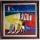 Tela retrata figura humana com rosto triangular, nariz, olhos e boca traçados em preto e com braço direito inclinado para a mão esquerda, que tem ramos nas cores branco, amarelo, laranja, vermelho e cinza.