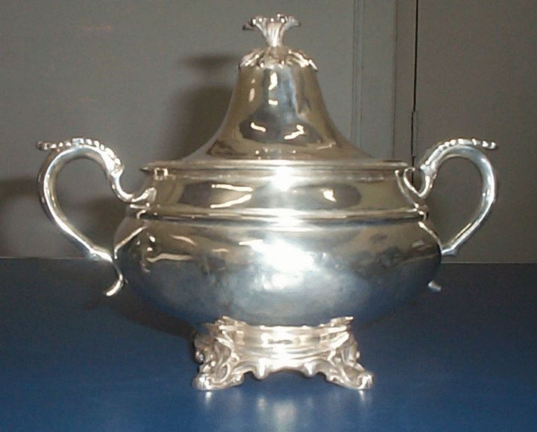 0002 Voltar 20 de julho de 2021 por   Documento 0002 Baixar Metadados Miniatura Compartilhar Número de ficha0002ObjetoAçucareiroConjuntoAçucareiroDescriçãoAçucareiro em prata trabalhada tem pés em formato de folha de acanto. Alças em formato de “S” com aplicação com ornato de uma folha. Tampa em formato de cone invertido, pegador terminando em folha e botão.MaterialPrataTécnicaFundida | CinzeladaDataSéculo XXAltura (cm)18,9 cmDiâmetro Base (cm)11,6 cmDiâmetro Boca (cm)11 cmProcedênciaPortugal - PortoModo de aquisiçãoDesconhecidoResponsabilidade imediataCuradoria de Bens Culturais do Palácio dos LeõesProteção legalGoverno do Estado do MaranhãoOrgãoSecretaria de Estado do Governo - SEGOVCondição de SegurançaBomEstado de ConservaçãoBomObjeto Restaurado?Não Continue navegando 0001 0003 Voltar para a página de itens