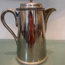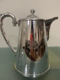 0008 Voltar 1 de setembro de 2021 por   Documento 8 Baixar Anexos 8 1 Metadados Miniatura Compartilhar Número de ficha0008ObjetoJarra de ÁguaConjuntoConjunto de JarrasDescriçãoJarra de prata para água. Bojo liso, gravado brasão do Estado do Maranhão. Alça menor, em canelura e frisos. Borda inferior e superior decorada com frisos.MaterialLiga de Metal | PrataTécnicaPrata fundidaDataSéculo XXAltura (cm)27,8 cmDiâmetro Base (cm)10,1 cmDiâmetro Boca (cm)18,7 cmProcedênciaInglaterraModo de aquisiçãoDesconhecidoResponsabilidade imediataCuradoria de Bens Culturais do Palácio dos LeõesProteção legalGoverno do Estado do MaranhãoOrgãoSecretaria de Estado do Governo - SEGOVCondição de SegurançaBomEstado de ConservaçãoBomObjeto Restaurado?Não Continue navegando 0008 0012 Voltar para a página de itens