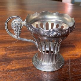 0031 Voltar 1 de setembro de 2021 por   Documento 1.5 Baixar Anexos IMG_8752 IMG_8753 31 Metadados Miniatura Compartilhar Número de ficha0031ObjetoRecipiente.ConjuntoPoncheiraDescriçãoCopo (recipiente) em cristal, com base em prata vazada.MaterialPrata | CristalDataSéculo XXAltura (cm)10 cmDiâmetro Base (cm)07 cmProcedênciaSem RegistroModo de aquisiçãoCompra - 2003 (RJ)Responsabilidade imediataCuradoria dos Bens Culturais do Palácio dos Leões.Proteção legalGoverno do Estado do Maranhão.OrgãoSecretaria de Governo do Estado - SEGOV.Condição de SegurançaBomEstado de ConservaçãoBomObjeto Restaurado?Não Continue navegando 0031 0031 Voltar para a página de itens