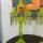 Apresenta figura feminina em pé com perna esquerda à frente do corpo, rosto inclinado para direita e, mão direita no queixo. Ao seu lado figura feminina com traje em azul, segura tecido sobre pedra.